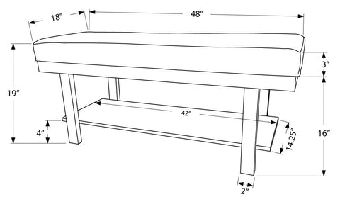 L&S Basics 10739 Bench - 48"L / Black Solid Wood / White Leather-Look