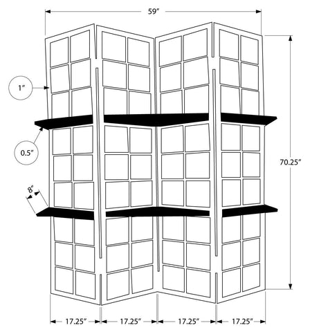 L&S Basics 10747 Folding Screen - 4 Panel / Cappuccino / 2 Display Shelves