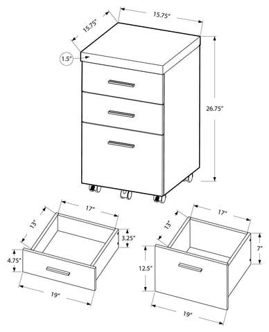 L&S Basics 10791 Filing Cabinet - 3 Drawer / Dark Taupe On Castors