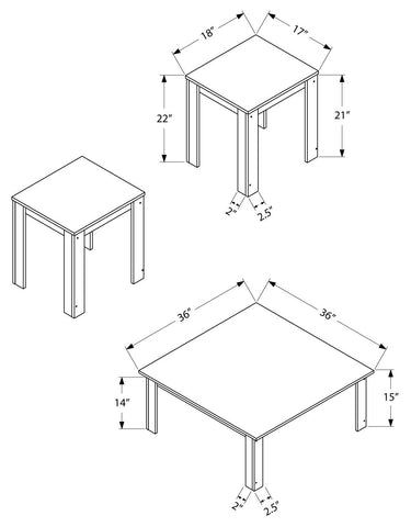 L&S Basics 10920 Table Set - 3Pcs Set / Dark Taupe