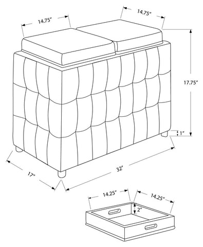L&S Basics 11173 Ottoman - 32"L / Storage Trays / White Leather-Look