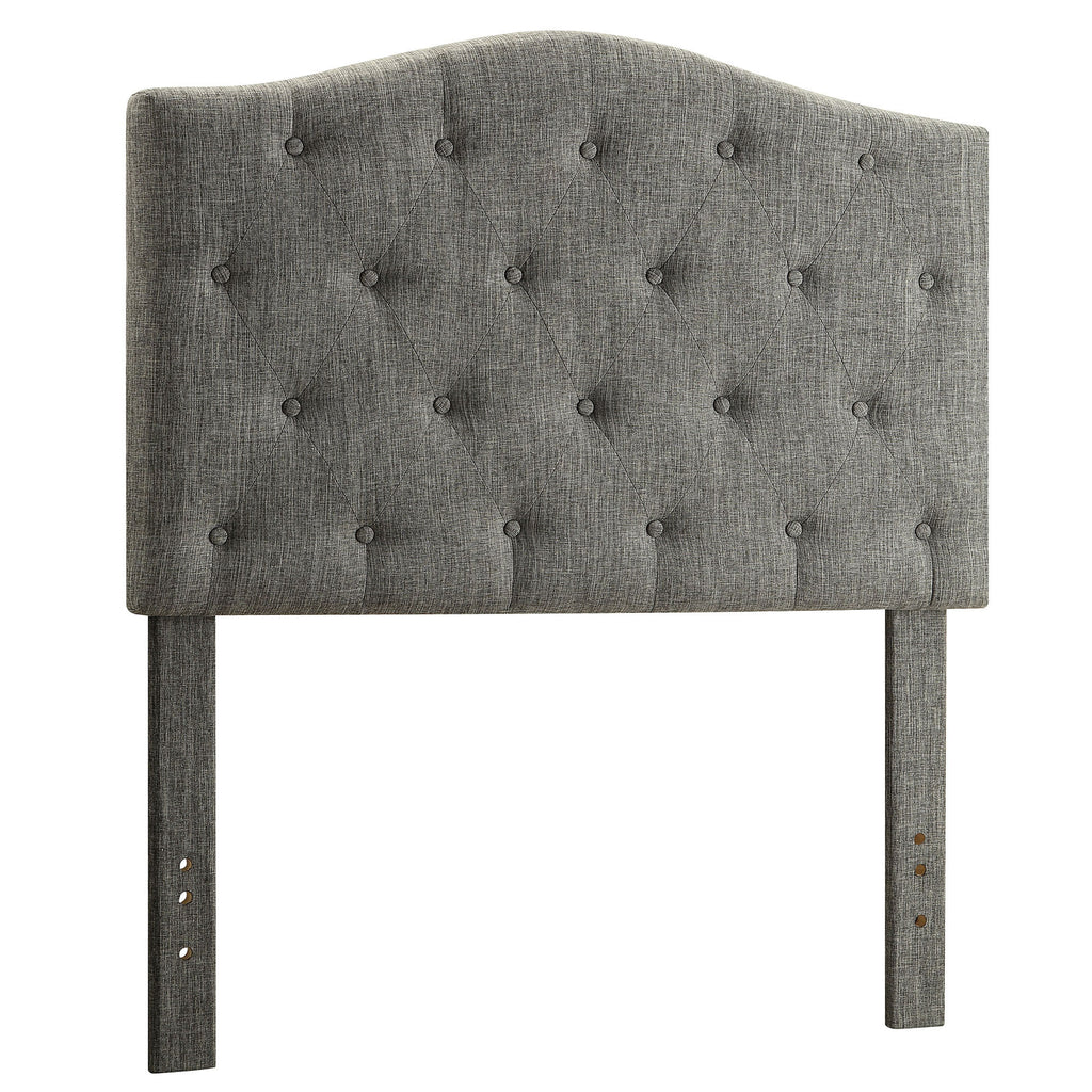 - Crown shaped headboard with button tufting and diamond patterned stitching