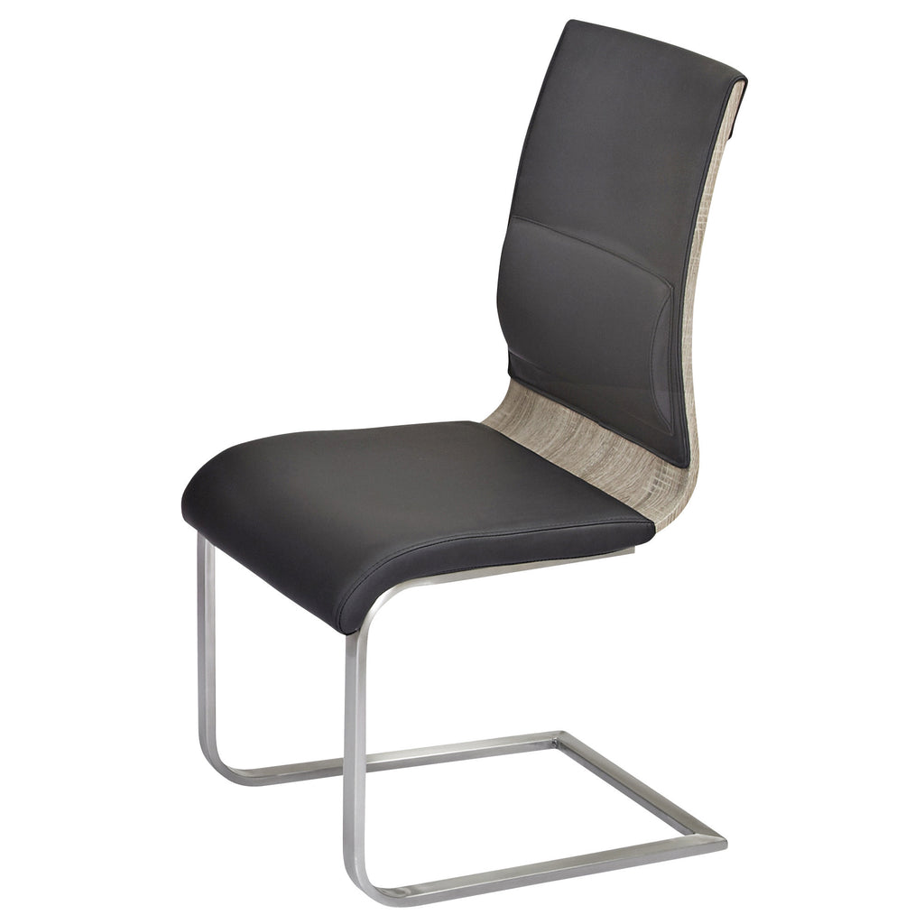 - Black faux leather cushioning on chair seat and back with lumbar support cushion
