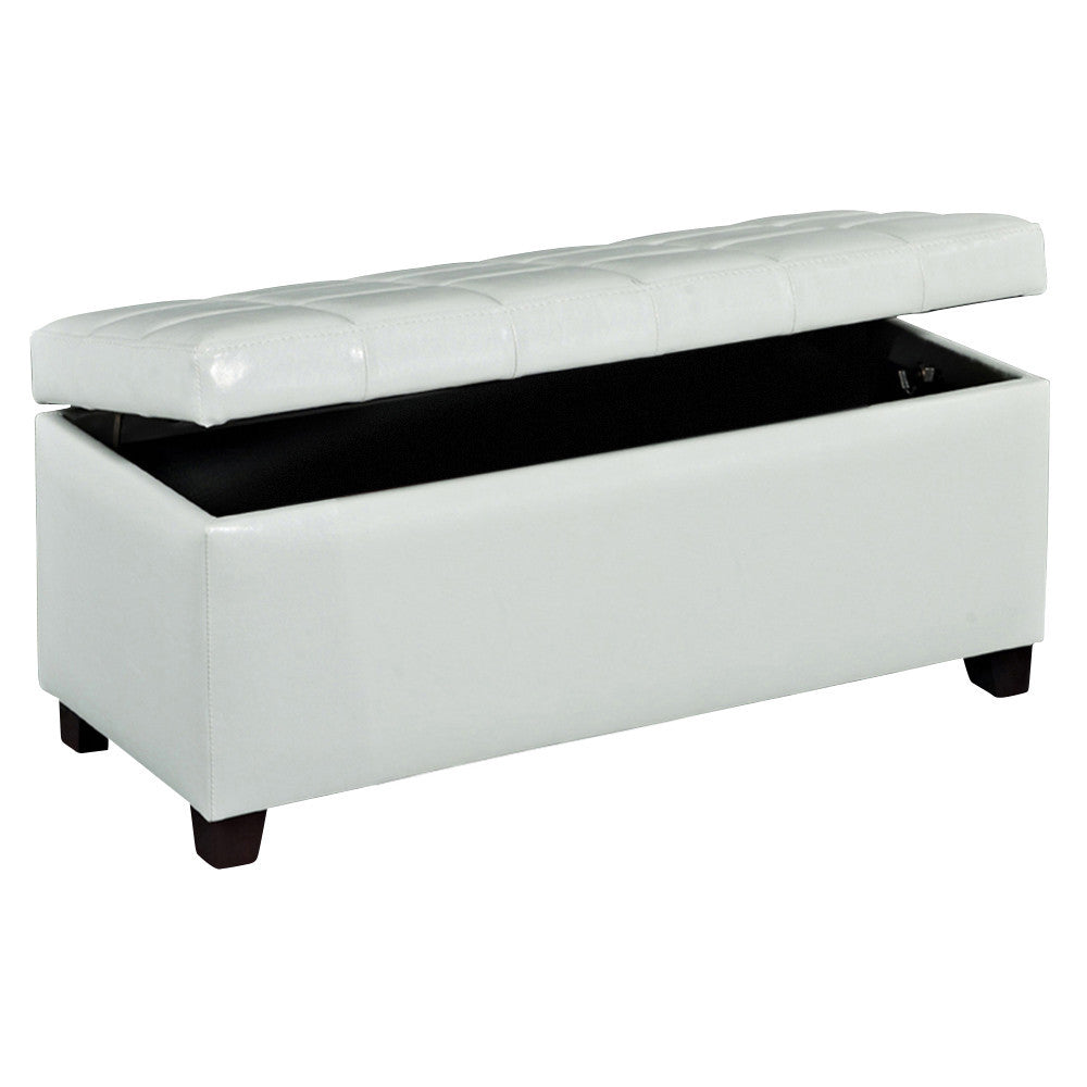 - Deep storage with safety-stop hinges to keep seat from slamming shut