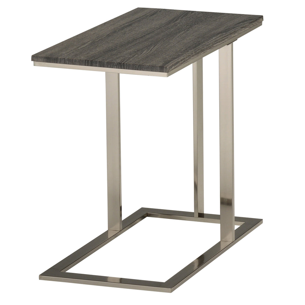 - C-style metal frame with a brushed nickel finish