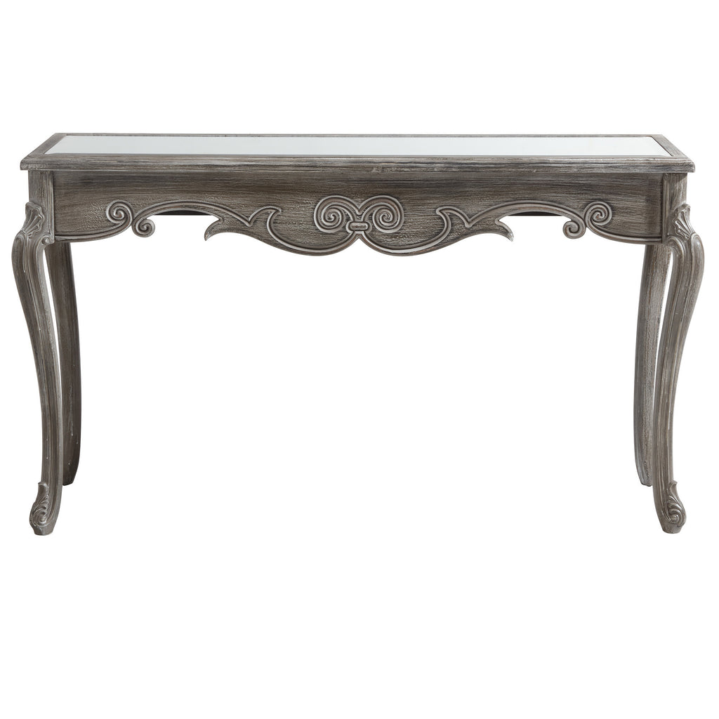 - Carved wood detailing on front apron