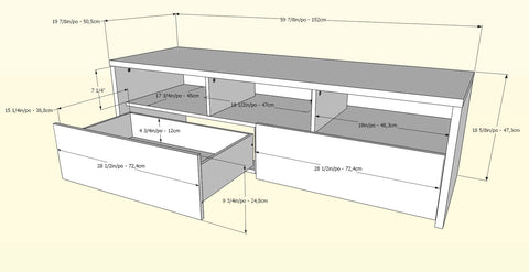 • 2 wide drawers on heavy duty full extension slides giving you full access to all your DVDs and entertainment accessories