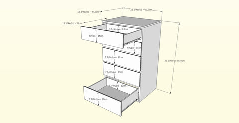 - 5 drawers on metal slides
