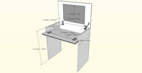 • Lift to open top panel with mirror; can be used as a writing desk when closed