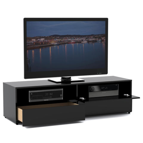 - 2 bottom storage drawers on metal slides to store DVDs, games, accessories, etc.