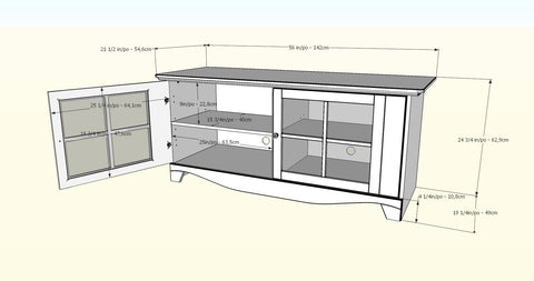 Assembled: 56"W 22"D 25"H 91lbsShipping and Returns