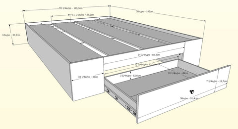 • 1 drawer on heavy duty full extension ball bearing slides giving you easy access to all your personal effects stored under the bed